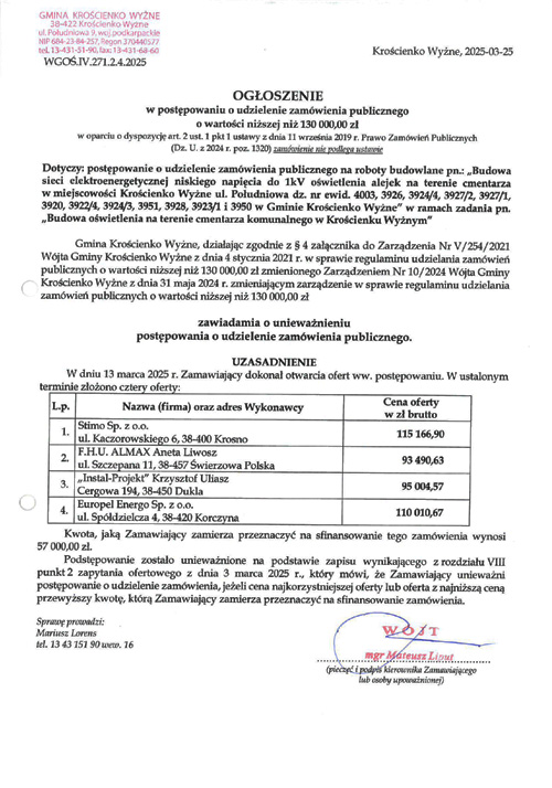 | 8. | Załącznik nr 7 Przedmiar robót Budowa Oświetlenia ulicznego Krościenko Wyżne | 89.46 Kb | ![]() |